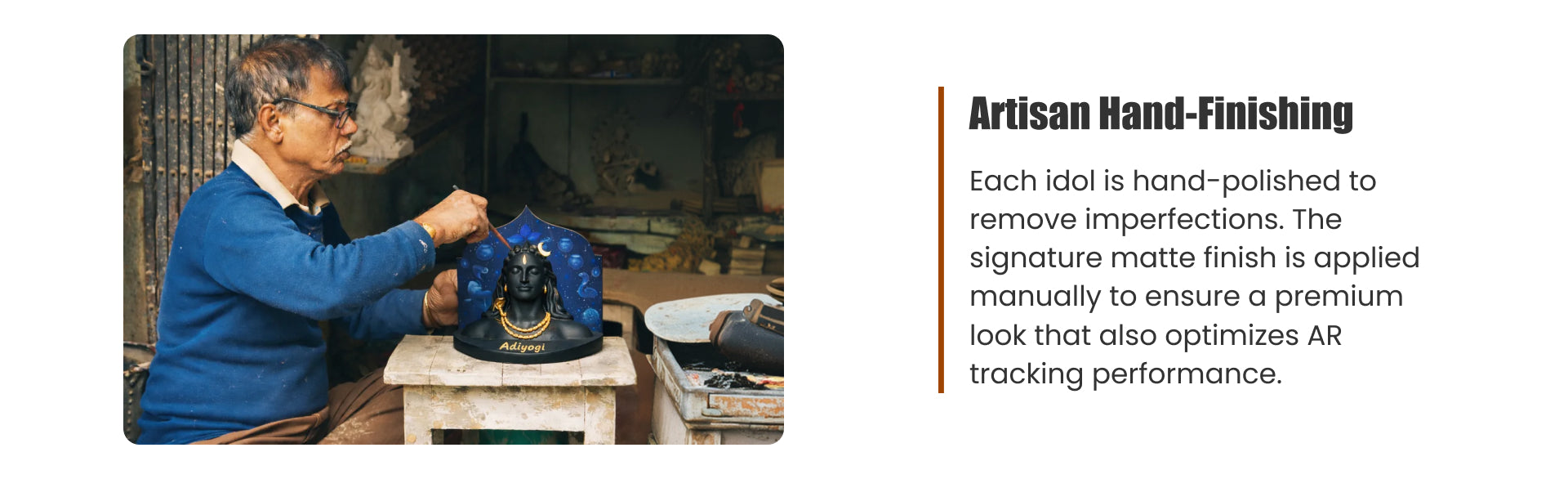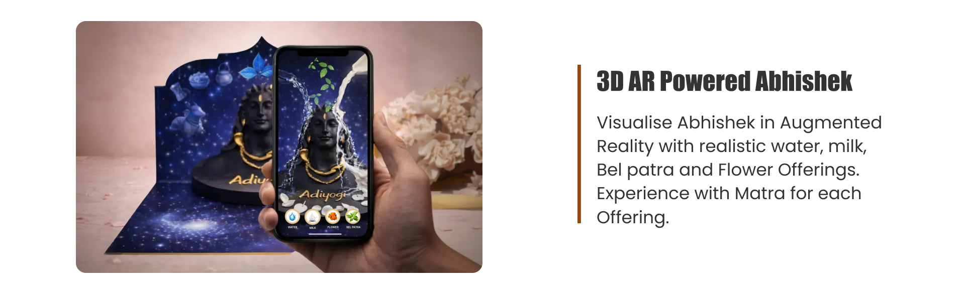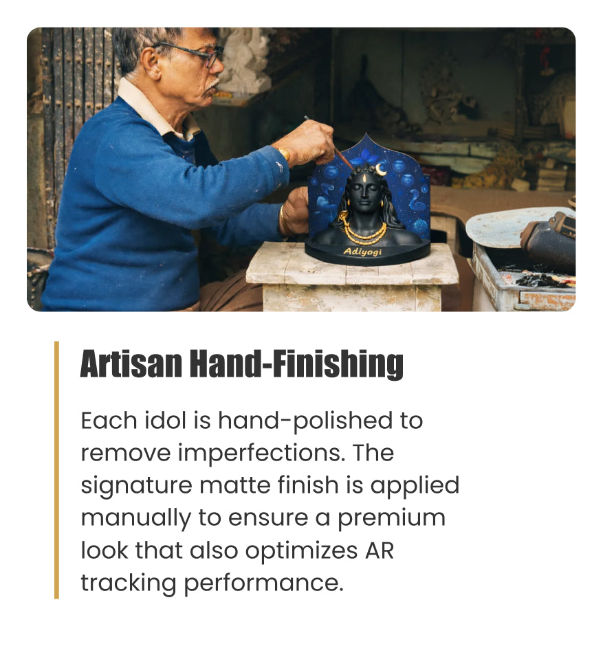 A handcrafted Adiyogi Shiva idol that unlocks an immersive 3D AR Abhishek experience through the Shubh Darshan App.