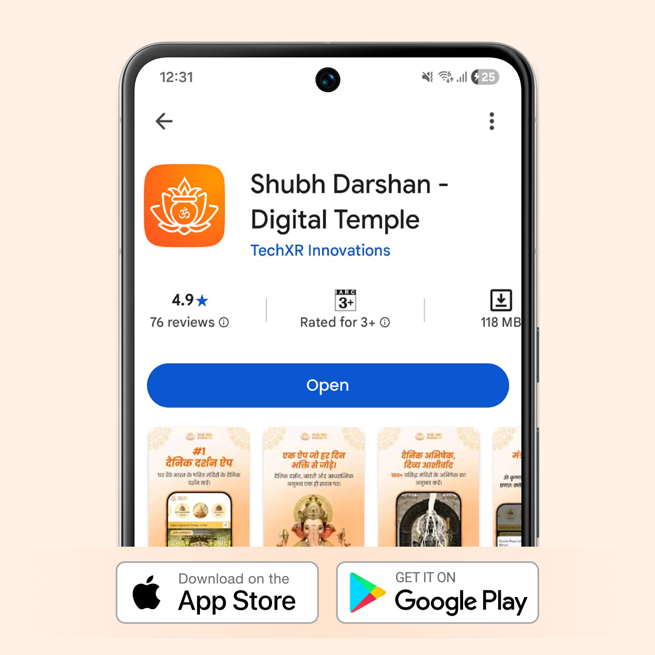 Get instant access to daily darshan, 3D VR temple experiences, aartis, and spiritual content — all in one app.